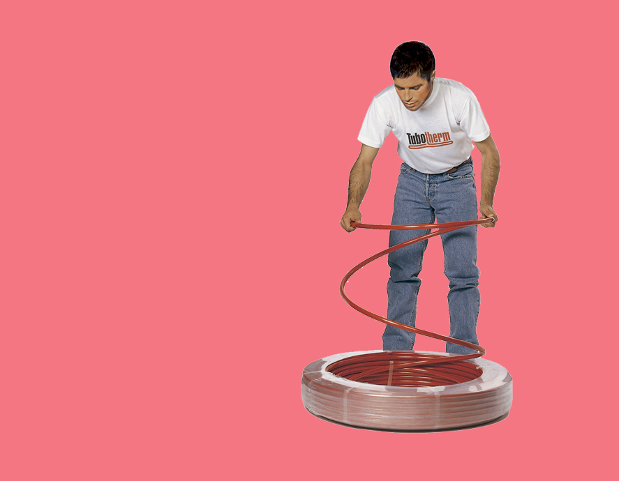 El rollo de Tubotherm ® tiene un sistema especial de presentación, que lo mantiene armado hasta el final, mientras se desenrolla, lo que facilita su manipuleo y ahorra tiempos de instalación.